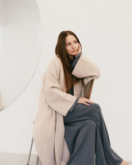 Designul său minimalist este definit de un decolteu în V elegant și un material dublat în zona bustului pentru o susținere discretă, eliminând astfel necesitatea elementelor rigide. Tăieturile laterale adaugă un plus de fluiditate mișcărilor tale, transformând această rochie sustenabilă, realizată cu grijă în Transilvania, într-o îmbrățișare caldă și confortabilă pentru fiecare zi.